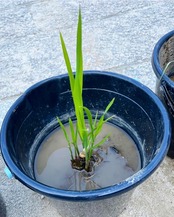届いた株を植え付けましたら、根が張るまでは浅水で7分目くらいで様子を見て、株が育ってきましたら